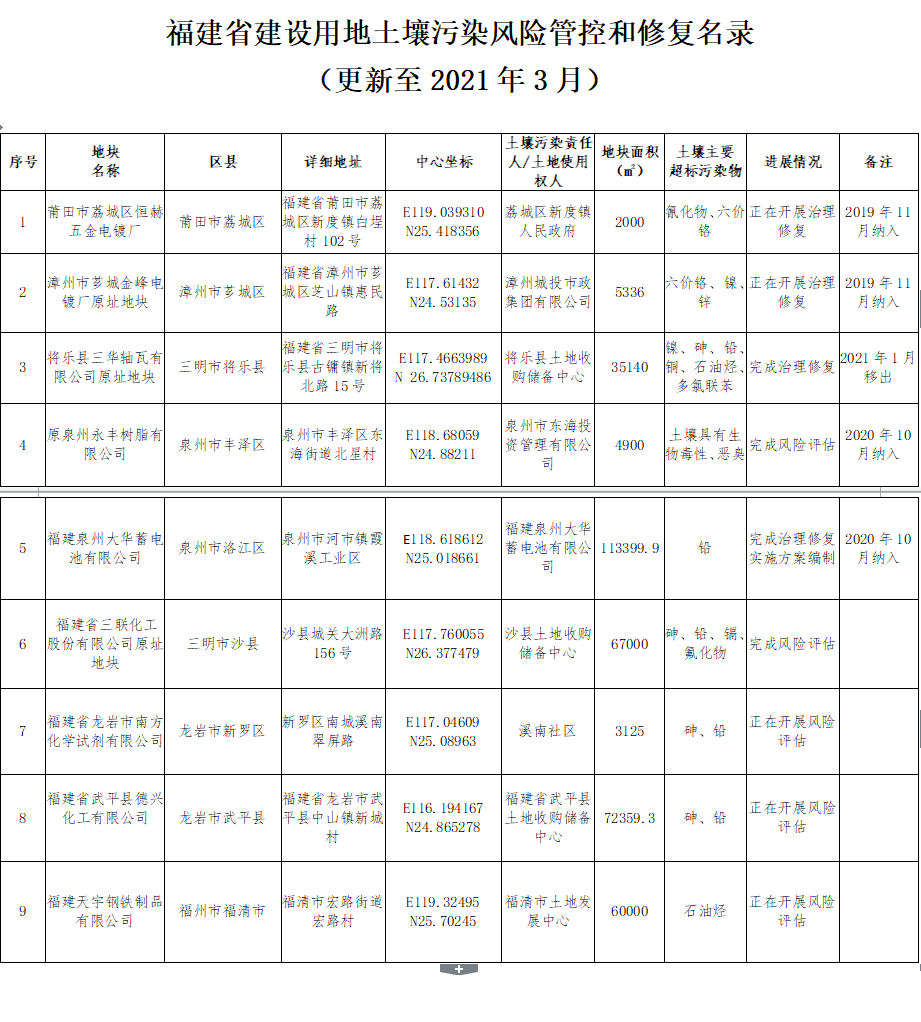 各設區(qū)市生態(tài)環(huán)境局、自然資源局,平潭綜合實驗區(qū)自然資源與生態(tài)環(huán)境局: 根據(jù)《土壤污染防治法》有關規(guī)定,省生態(tài)環(huán)境廳會同省自然資源廳,依據(jù)2020年11月以來我省土壤污染風險評估報告及風險管控、效果評估報告評審情況,對《福建省建設用地土壤污染風險管控和修復名錄》(以下簡稱《名錄》)進行動態(tài)更新,現(xiàn)印發(fā)...