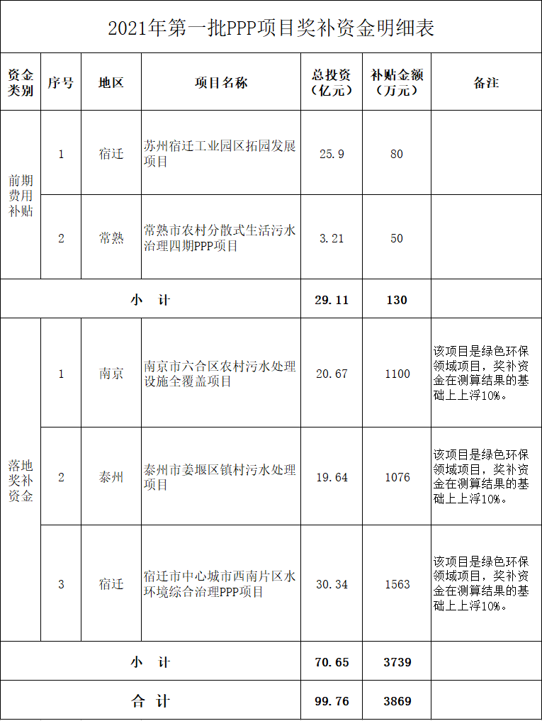 關(guān)于下達(dá)2021年第一批PPP項(xiàng)目獎(jiǎng)補(bǔ)資金的通知蘇財(cái)金〔2021〕33號(hào) 南京、泰州、宿遷、常熟市財(cái)政局: 為貫徹落實(shí)《省政府關(guān)于在公共服務(wù)領(lǐng)域推廣政府和社會(huì)資本合作模式的實(shí)施意見(jiàn)》(蘇政發(fā)〔2015〕101號(hào))精神,進(jìn)一步高質(zhì)量推動(dòng)我省政府和社會(huì)資本合作(PPP)工作開(kāi)展,根據(jù)江蘇省財(cái)政廳《政府和...