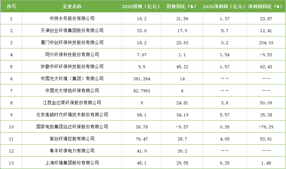 目前,已經(jīng)陸陸續(xù)續(xù)有環(huán)保上市企業(yè)發(fā)布2020年業(yè)績(jī)報(bào)告了,來(lái)看一下各自的盈虧情況。 一、中持水務(wù)股份有限公司 2020年度營(yíng)收為1,624,993,819.3元(16.2億元),同比增長(zhǎng)21.56%;凈利潤(rùn)為137,630,805.46元(1.37億元),同比增長(zhǎng)23.87%;歸屬于上市公司股東的扣...
