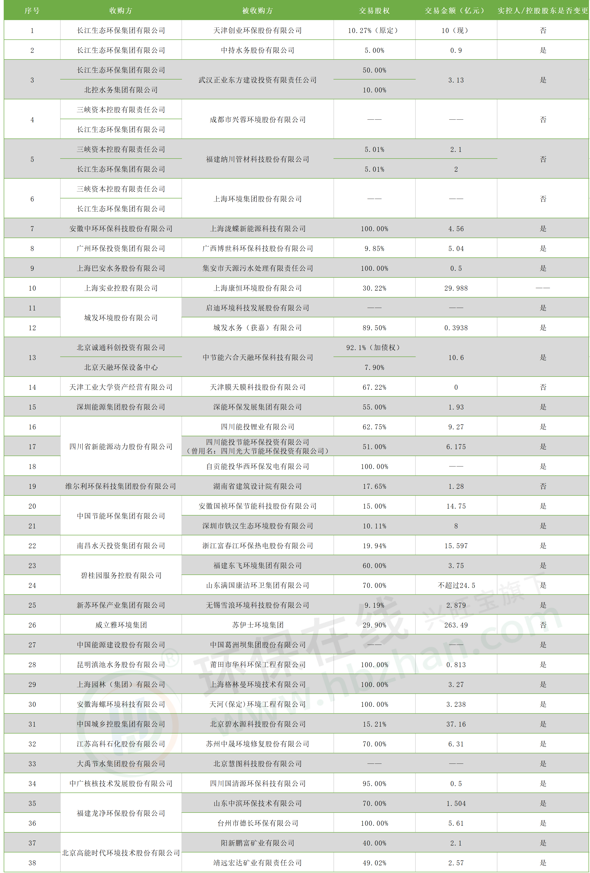 都說2018年之后,環(huán)保企業(yè)迎來了強(qiáng)“洗牌”期,最為明顯的一點就是國資入主紓困。2020年,又是一場“龍虎斗”,股權(quán)騰挪間意味著環(huán)保市場格局正在快速變化。 本文盤點一下2020年環(huán)保企業(yè)的股權(quán)交易。 注: 1、創(chuàng)業(yè)環(huán)保股權(quán)交易以非公開發(fā)行股票方式進(jìn)行,...