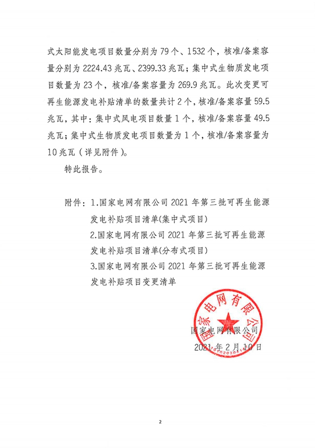 關(guān)于公布2021年第三批可再生能源發(fā)電補(bǔ)貼項(xiàng)目清單的公告