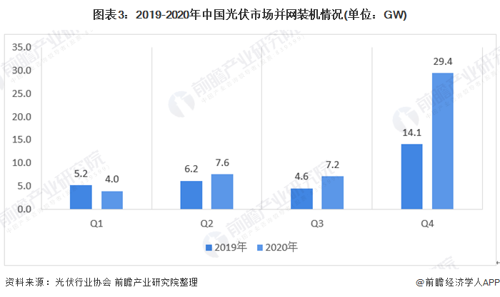 我國(guó)光伏市場(chǎng)并網(wǎng)裝機(jī)主要集中在Q4,2020年Q4并網(wǎng)裝機(jī)為29.4GW