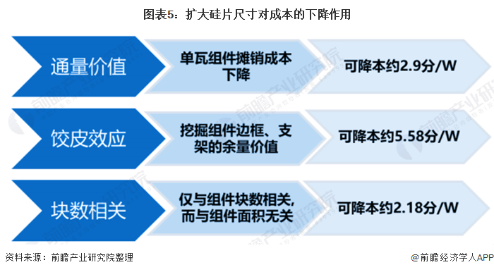 1)通量?jī)r(jià)值,硅片尺寸增加,現(xiàn)有設(shè)備產(chǎn)能增加,單瓦組件所攤銷的人力、折舊等成本降低;