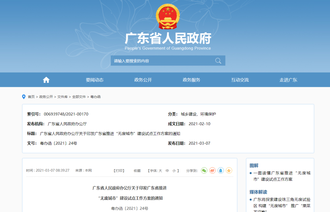 廣東省人民政府辦公廳關(guān)于印發(fā)廣東省推進(jìn)“無廢城市”建設(shè)試點(diǎn)工作方案的通知