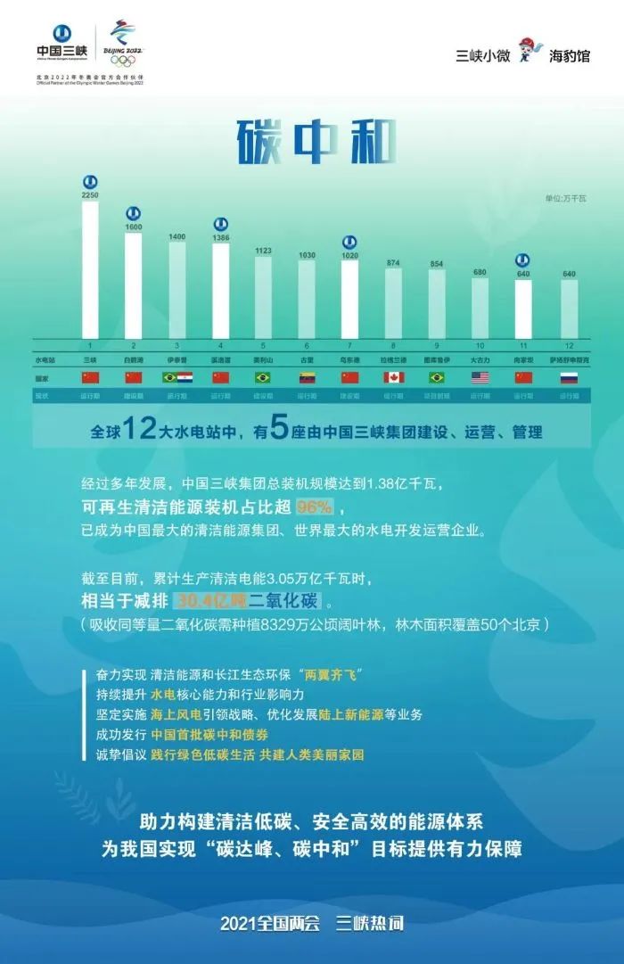從體量上看,五大發(fā)電集團(tuán)都高于三峽集團(tuán),但從清潔能源裝機(jī)占比上,后者遠(yuǎn)高于前者。五大發(fā)電集團(tuán)發(fā)軔于煤電,后逐漸向水電、新能源、核電等業(yè)務(wù)進(jìn)行延伸。截至目前,國(guó)家電投清潔能源裝機(jī)占比最高,達(dá)到56.09%,在五大發(fā)電集團(tuán)中一騎絕塵,排名第二位的華電集團(tuán)為43.4%。而三峽集團(tuán)因三峽大壩這個(gè)超級(jí)世紀(jì)水電工程而生,自帶清潔能源光環(huán)。經(jīng)過多年的發(fā)展,截止目前,三峽集團(tuán)清潔能源裝機(jī)比例高達(dá)96%以上。這也是為何三峽集團(tuán)敢于第一個(gè)宣布碳中和時(shí)間表。截至2019年底,三峽集團(tuán)已投產(chǎn)裝機(jī)為7496.3萬千瓦,其中水電裝機(jī)為5970萬千瓦,穩(wěn)居第一。在水電方面,三峽集團(tuán)是毫無爭(zhēng)議的巨無霸。圍繞金沙江下游,三峽集團(tuán)建有四座世界級(jí)千萬千瓦時(shí)巨型梯級(jí)水電站,分別是烏東德、白鶴灘、溪洛渡和向家壩,總裝機(jī)4646萬千瓦,相當(dāng)于“兩個(gè)三峽工程”,總投資約5000億元。截至目前,三峽集團(tuán)可控、權(quán)益和在建總裝機(jī)規(guī)模達(dá)到1.38億千瓦,已發(fā)展成為全球最大的水電開發(fā)運(yùn)營(yíng)企業(yè)和我國(guó)最大的清潔能源集團(tuán)。雖然比其他能源央企布局新能源業(yè)務(wù)晚,但是去年,該集團(tuán)在新能源業(yè)務(wù)上已經(jīng)取得巨大突破。2020年,其新能源新增裝機(jī)超500萬千瓦,總裝機(jī)突破1600萬千瓦。其中,風(fēng)電裝機(jī)突破900萬千瓦,光伏裝機(jī)突破700萬千瓦。通過“十三五”期間的努力,三峽集團(tuán)的新能源裝機(jī)容量已攀升至五大發(fā)電和中廣核之后,位列全國(guó)第七。從“十四五”開始,三峽集團(tuán)在新能源業(yè)務(wù)發(fā)展上將開足馬力。上個(gè)月,雷鳴山公開表示,“作為全球一流的清潔能源集團(tuán),三峽集團(tuán)在規(guī)模上還有一定差距,特別是在新能源領(lǐng)域需要開足馬力,實(shí)現(xiàn)更快速、更高質(zhì)量的發(fā)展。未來5年,三峽提出的目標(biāo)是新能源裝機(jī)實(shí)現(xiàn)7000萬至8000萬千瓦的水平。”這意味著,“十四五”期間,三峽集團(tuán)新能源裝機(jī)容量要在現(xiàn)有基礎(chǔ)上增4-5倍。到2025年,三峽集團(tuán)目標(biāo)是基本建成世界一流清潔能源集團(tuán)和國(guó)內(nèi)領(lǐng)先生態(tài)環(huán)保企業(yè),奮力實(shí)現(xiàn)清潔能源與長(zhǎng)江生態(tài)環(huán)?!皟梢睚R飛”,全力打造沿江最大清潔能源走廊、沿江最大綠色生態(tài)走廊、沿海最大海上風(fēng)電走廊、“一帶一路”國(guó)際清潔能源走廊等“四大走廊”。