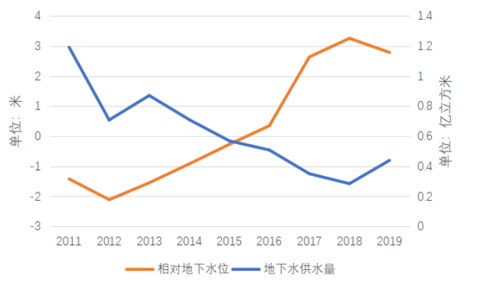 圖 3 2011-2019年宿遷市相對(duì)地下水位與年地下水供水量變化