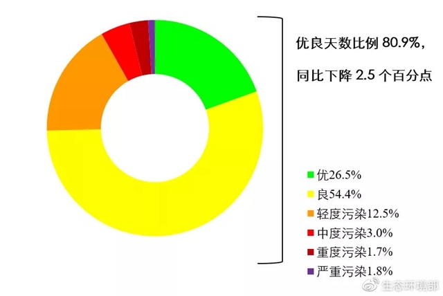 1-3月,全國339個地級及以上城市平均優(yōu)良天數(shù)比例為80.9%,同比下降2.5個百分點(diǎn);PM2.5平均濃度為45微克/立方米,同比下降2.2%;PM10平均濃度為75微克/立方米,同比上升13.6%;O3平均濃度為108微克/立方米,同比上升2.9%;SO2平均濃度為12微克/立方米,同比上升9.1%;NO2平均濃度為29 微克/立方米,同比上升20.8%;CO平均濃度為1.3毫克/立方米,同比下降13.3%。