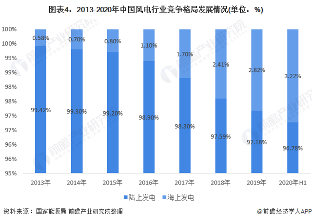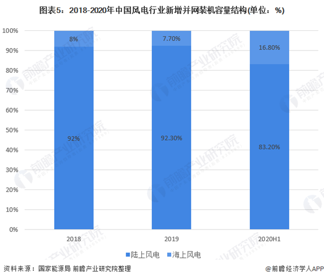 2、中國(guó)風(fēng)電行業(yè)細(xì)分格局分析:海上風(fēng)電份額逐漸提升