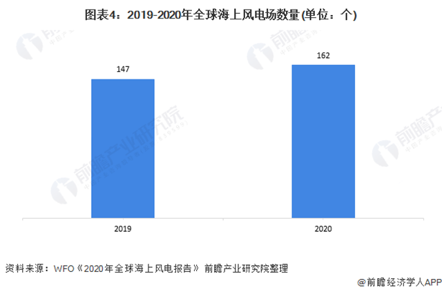 據(jù)The Wind Power的信息披露,2020年末,全球風(fēng)電場(chǎng)數(shù)量已超過(guò)2.16萬(wàn)個(gè),其中以陸上風(fēng)電場(chǎng)為主,但海上風(fēng)電場(chǎng)的建設(shè)正在加速。