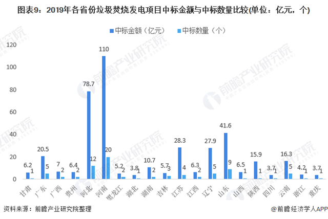 山東省作為華東大省,中標項目9個,總投資額41.6億元,位居第三。山東省近一半項目由光大國際中標。