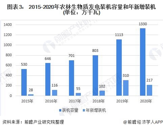 截止2020年底,生物質(zhì)發(fā)電新增裝機543萬千瓦,累計裝機達到2952萬千瓦,同比增長30.1%。全年生物質(zhì)發(fā)電1326億千瓦時,同比增長19.4%。繼續(xù)保持穩(wěn)步增長勢頭。