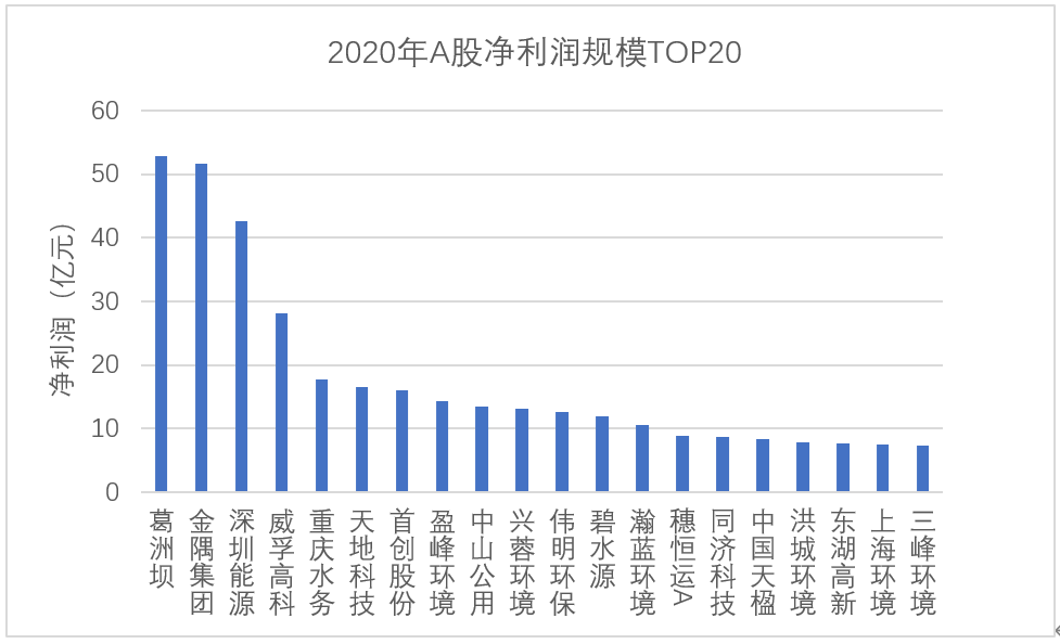 總體來看,2020年環(huán)保上市公司凈利潤總額高于上年,獲利表現(xiàn)優(yōu)于2019年,增幅超過A股平均水平。