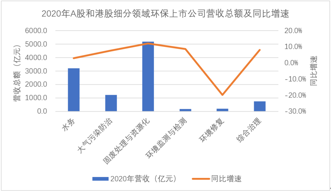總體來看,2020年環(huán)保上市公司經(jīng)濟運行呈現(xiàn)以下特點:1、環(huán)保上市公司總體營收、凈利潤增幅均高于A股平均水平。在前期疫情影響和后期政策助力、市場好轉(zhuǎn)等多重因素影響下,環(huán)保行業(yè)整體實現(xiàn)了相對較快的增長,表現(xiàn)出了一定的抗沖擊能力和持續(xù)的發(fā)展?jié)摿Α?/span>2、環(huán)保上市公司整體經(jīng)營情況有所改善。從披露年報數(shù)據(jù)來看,A股環(huán)保上市公司每股現(xiàn)金流凈額增長95.7%,增幅較上年增加31.1個百分點;平均資產(chǎn)負債率下降1.7個百分點,資產(chǎn)負債率維持在合理區(qū)間;每股收益增長11.5%,“賺錢”能力提升。3、各細分領(lǐng)域經(jīng)營情況差異明顯。水務(wù)領(lǐng)域營收和凈利潤總體平穩(wěn),一些企業(yè)運營服務(wù)收入占比增加,部分科創(chuàng)板企業(yè)表現(xiàn)亮眼;固廢領(lǐng)域營收和凈利潤規(guī)模高于其他細分領(lǐng)域,在無廢城市、垃圾分類、補短板、生物質(zhì)發(fā)電補貼等政策的支持下,固廢企業(yè)特別是垃圾焚燒、環(huán)衛(wèi)相關(guān)企業(yè)營收和凈利潤實現(xiàn)高速增長;大氣領(lǐng)域雖然營收增長,但是凈利潤下降,傳統(tǒng)領(lǐng)域如工業(yè)除塵甚至是脫硝脫硫,競爭激烈、毛利下降;監(jiān)測領(lǐng)域企業(yè)規(guī)模偏小,但是重視科技研發(fā),一些企業(yè)在營收總額和利潤下降的情況下,仍堅持提高研發(fā)投入。4、經(jīng)歷行業(yè)短期波動后,一些環(huán)保企業(yè)上市公司開始主動調(diào)整經(jīng)營戰(zhàn)略,正在或已經(jīng)走出了經(jīng)營困局,走向更為成熟的發(fā)展階段。有的企業(yè)規(guī)避不必要風(fēng)險,主動撤出一些風(fēng)險較大的項目;有的企業(yè)調(diào)整經(jīng)營方向,運營服務(wù)業(yè)務(wù)比例增長。
