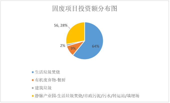2020年,河南18個主要城市共中標固廢項目19個,總投資額64.32億。共包含:10個生活垃圾焚燒項目(含綜合處理項目3個)、6個有機廢棄物項目(含綜合處理項目2個)、4個建筑垃圾、1個危險廢物項目、1個靜脈產(chǎn)業(yè)園。從2020年河南固廢市場中標情況來看,生活垃圾焚燒項目投資額最大,占整個固廢市場的64%,具體分布情況,如圖2所示: