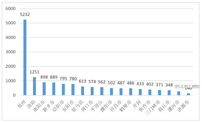 企查查顯示,截至2020年年底,河南省經(jīng)營范圍含環(huán)境治理的企業(yè)共有15028家;18個市中,排名前五位的城市依次是鄭州5232、洛陽1251、南陽市898、新鄉(xiāng)市889、信陽市795。從這些城市的環(huán)保布局情況,也能看出其主要發(fā)力的點和方向,各地區(qū)環(huán)保相關企業(yè)具體數(shù)量分布情況,如圖4所示: