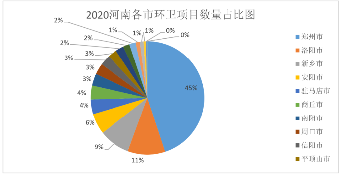 圖3:2020年河南各市環(huán)衛(wèi)市場化項目數(shù)量占比情況(統(tǒng)計數(shù)據(jù)來源于:E標通)