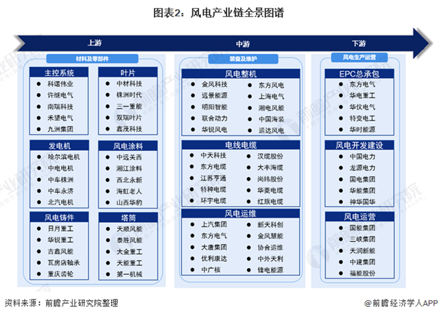 中游整機(jī)環(huán)節(jié)的金風(fēng)科技、明陽智能、遠(yuǎn)景能源、聯(lián)合動力、上海電氣等,風(fēng)電電纜環(huán)節(jié)的中天科技、哦東方電纜等;風(fēng)電運(yùn)維環(huán)節(jié)的大唐集團(tuán)、中廣核等;