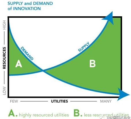 大部分的創(chuàng)新還是由少數(shù)擁有豐富資源的水務(wù)公司完成的(上圖的A區(qū)部分)