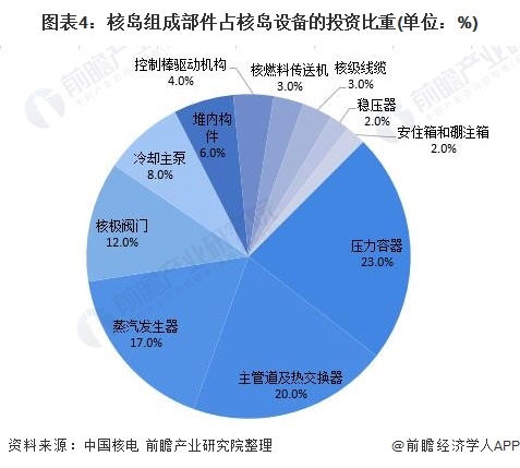 據(jù)中國核電和中國核電信息網(wǎng)的披露,一般而言,核島設(shè)備中,壓力容器、主管道及熱交換器、蒸汽發(fā)生器都是投資的重點(diǎn),其中壓力容器占比為23%,主管道及熱交換器占比為20%,蒸汽發(fā)生器占比為17%,核島閥門占核島設(shè)備投資中的比例大概為12%。
