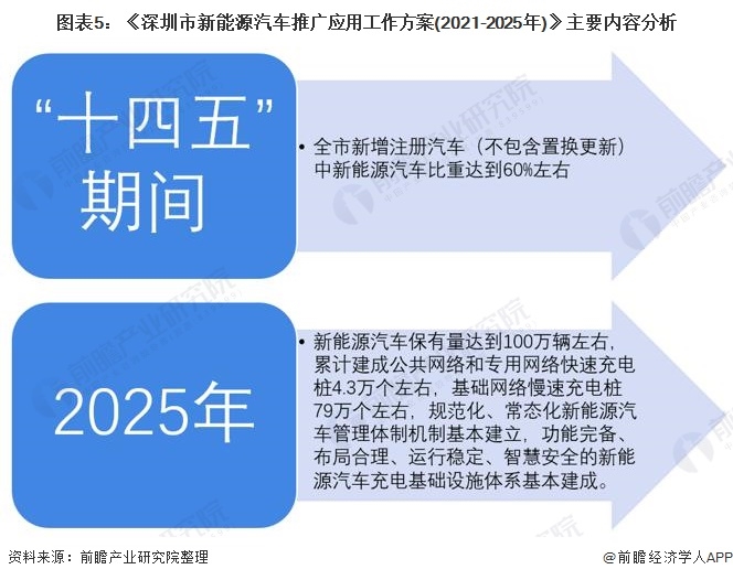 為推動(dòng)新能源汽車(chē)的發(fā)展,深圳市做出了明晰的發(fā)展規(guī)劃。2021年3月頒布《深圳市新能源汽車(chē)推廣應(yīng)用工作方案(2021-2025年)》,政策表明“十四五”期間,全市新增注冊(cè)汽車(chē)(不包含置換更新)中新能源汽車(chē)比重達(dá)到60%左右,至2025年,新能源汽車(chē)保有量達(dá)到100萬(wàn)輛左右,累計(jì)建成公共網(wǎng)絡(luò)和專(zhuān)用網(wǎng)絡(luò)快速充電樁4.3萬(wàn)個(gè)左右,基礎(chǔ)網(wǎng)絡(luò)慢速充電樁79萬(wàn)個(gè)左右,規(guī)范化、常態(tài)化新能源汽車(chē)管理體制機(jī)制基本建立,功能完備、布局合理、運(yùn)行穩(wěn)定、智慧安全的新能源汽車(chē)充電基礎(chǔ)設(shè)施體系基本建成。