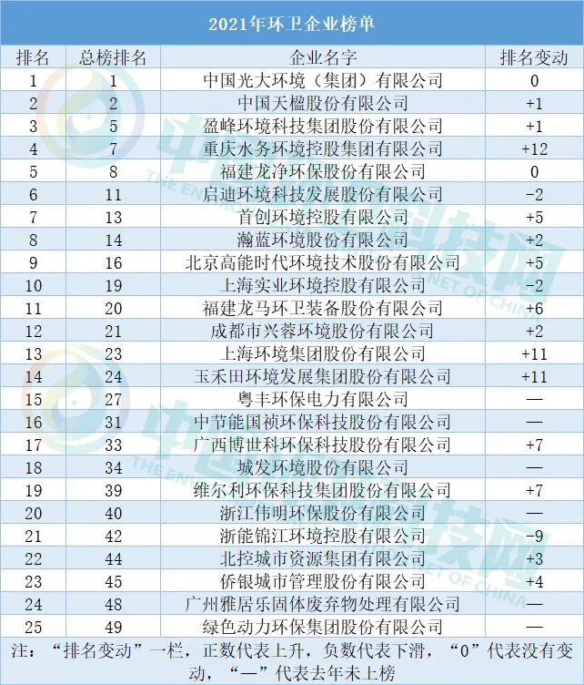 從排名可見環(huán)衛(wèi)行業(yè)發(fā)展之迅猛。當然,也有啟迪環(huán)境、上海實業(yè)、浙能錦江三家企業(yè)排名出現(xiàn)下降。對此,只能這樣說,當所有人都在拼命前行,哪容你略作停息!