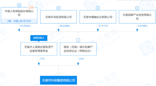 無錫市環(huán)保集團(tuán)有限公司實(shí)際控制人為無錫市人民政府國(guó)有資產(chǎn)監(jiān)督管理委員會(huì),擁有無錫環(huán)保集團(tuán)77%的股權(quán),另一大股東為國(guó)壽(無錫)城市發(fā)展產(chǎn)業(yè)投資企業(yè)(有限合伙),該公司最大股東為中國(guó)人壽保險(xiǎn)股份有限公司,持股59.7826%。