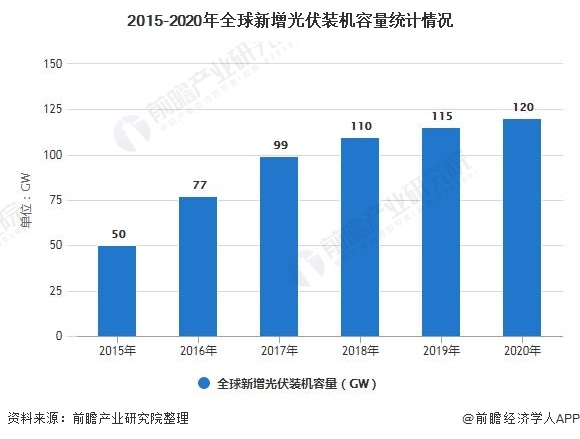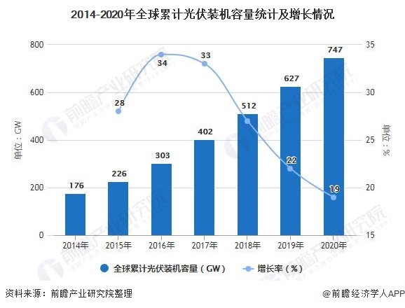 隨著全球太陽能產(chǎn)業(yè)整合的逐步深化,產(chǎn)品供過于求的局面正在得到改善。預(yù)計2020年,全球累計光伏裝機(jī)容量為747GW。