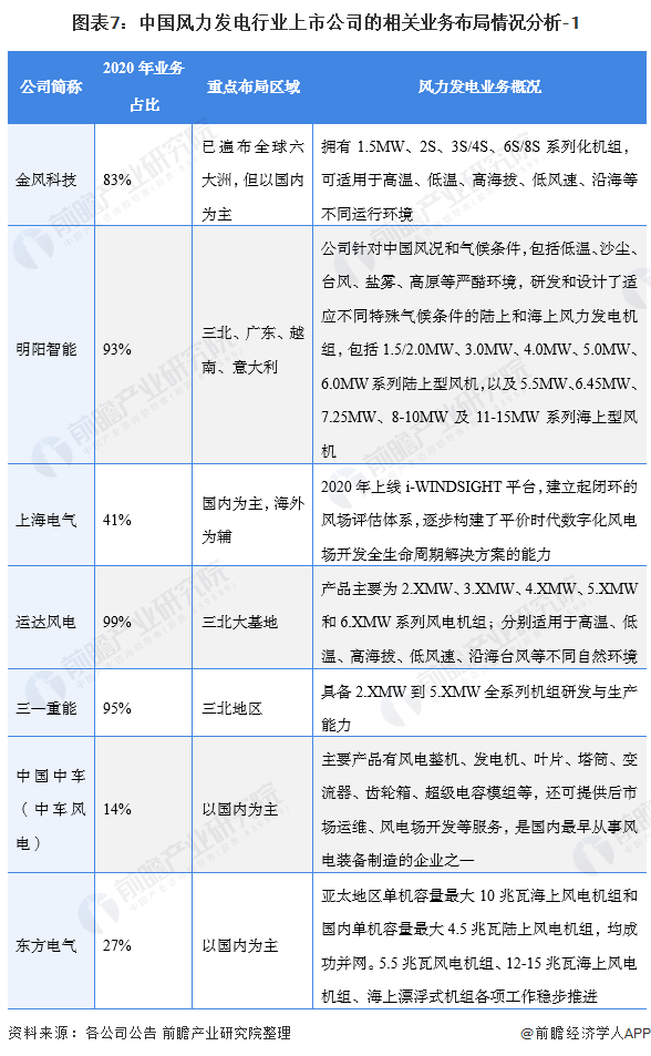 2、 風力發(fā)電行業(yè)上市公司業(yè)務布局對比