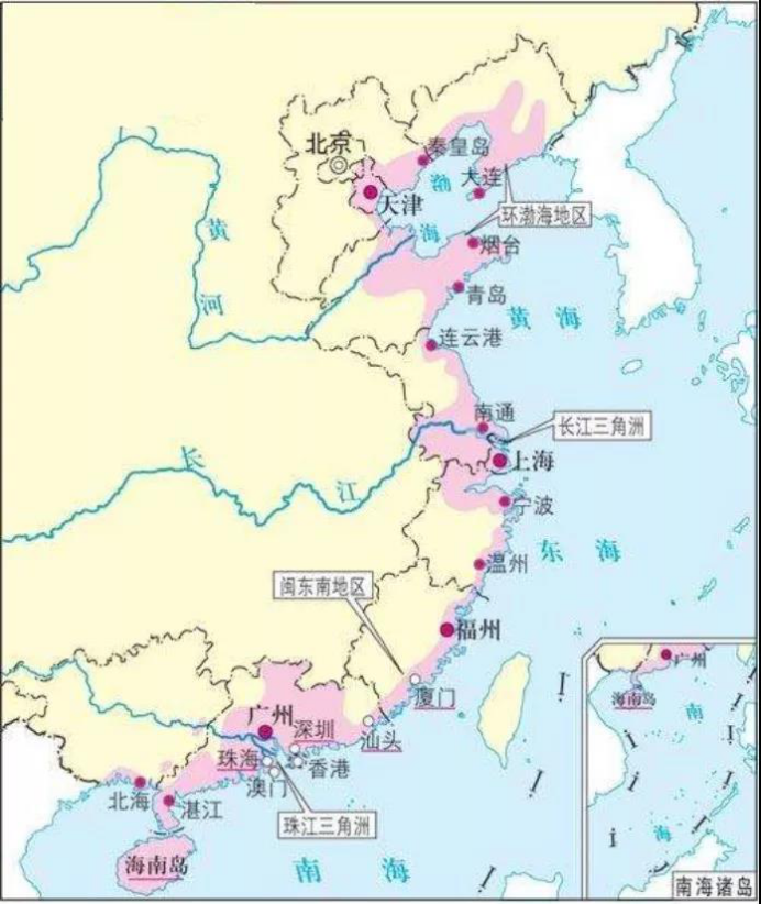 根據(jù)2012版《中國海洋統(tǒng)計年鑒》,我國大陸海岸線長達1.8萬km,包括9個沿海省(遼寧、河北、山東、江蘇、浙江、福建、廣東、海南)、1個自治區(qū)(廣西)、2個直轄市(上海、天津);53個沿海城市、242個沿海區(qū)縣。