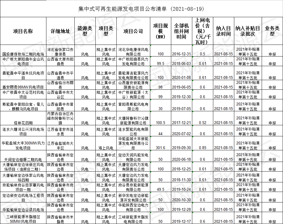 以下為本次公布的集中式可再生能源發(fā)電項目詳情: