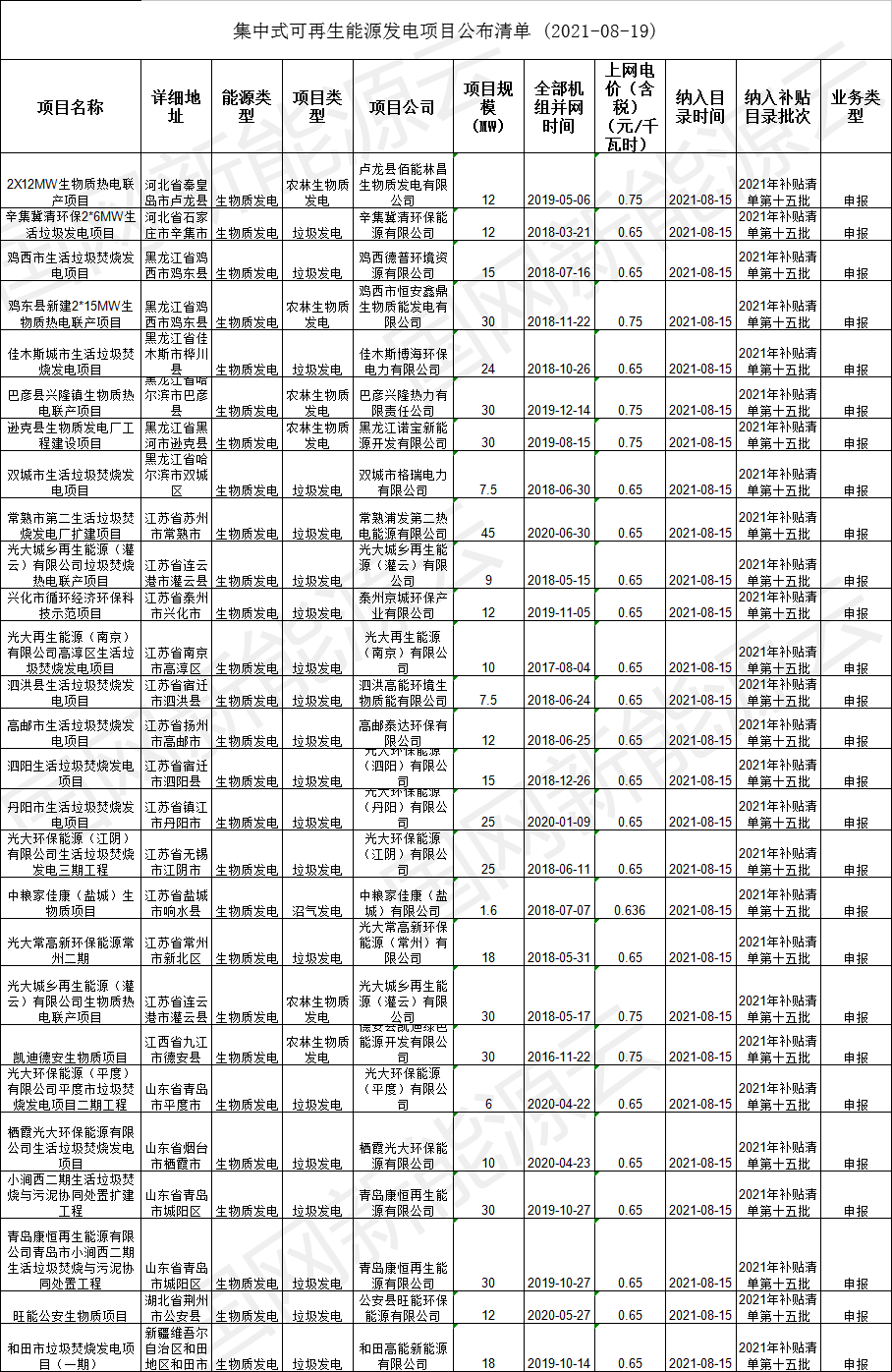 2021年8月15日,我公司已將完成公示的2021年第十五批可再生能源發(fā)電項目補貼項目清單上報國家主管部門,現(xiàn)將十五批可再生能源發(fā)電并網(wǎng)項目清單詳情盤點如下: