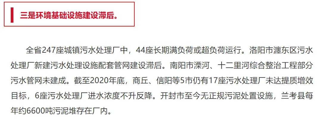 以“污水管網建設滯后”為例,在上一批中央生態(tài)環(huán)保督察中,管網問題是督察組反饋最多的一項環(huán)境基礎設施短板,沒有之一。云南:“十二五”期間規(guī)劃配套的10.17公里污水干管僅完成4.72公里。河南:洛陽市瀍東區(qū)污水處理廠新建污水處理設施配套管網建設滯后。南陽市溧河、十二里河綜合整治工程部分污水管網未建成。廣西:崇左市管網建設嚴重滯后,2020年污水集中收集率僅為6.7%,大量生活污水直排。