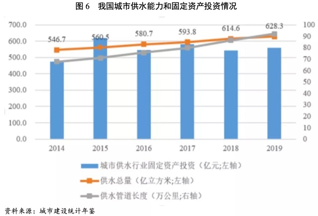 此外,根據(jù)我國(guó)節(jié)水政策要求,到2017年全國(guó)公共供水管網(wǎng)漏損率控制在12%以內(nèi);到2020年控制在10%以內(nèi);2019年,我國(guó)公共供水管網(wǎng)漏損率達(dá)14.12%,進(jìn)度與政策要求相比較為滯后,未來(lái)城市老舊供水管網(wǎng)改造仍將是水務(wù)行業(yè)投資的重要內(nèi)容。