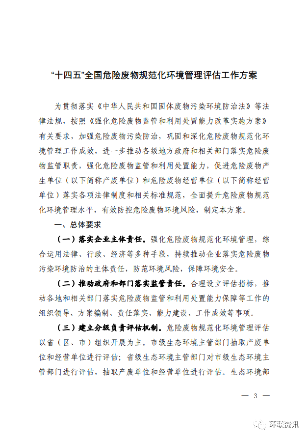關(guān)于印發(fā)《“十四五”全國(guó)危險(xiǎn)廢物規(guī)范化環(huán)境管理評(píng)估工作方案》的通知各省、自治區(qū)、直轄市生態(tài)環(huán)境廳(局),新疆生產(chǎn)建設(shè)兵團(tuán)生態(tài)環(huán)境局: