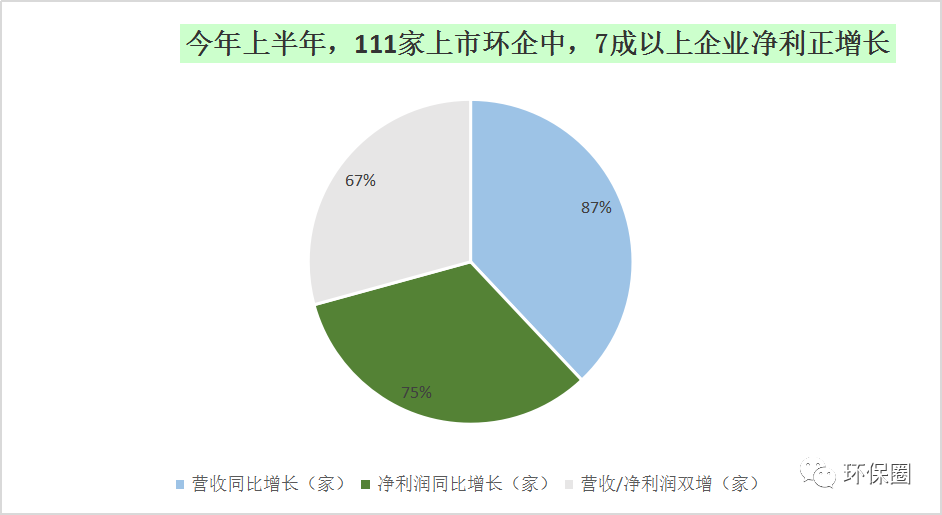 圖二:今年上半年,111家上市環(huán)企中,70%以上企業(yè)凈利潤正增長