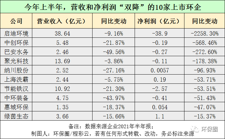圖三:今年上半年,營收和凈利潤“雙降”的10家上市環(huán)企