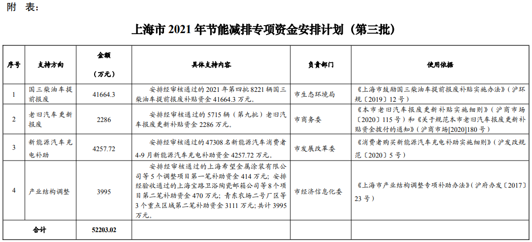 滬發(fā)改環(huán)資〔2021〕80號 市生態(tài)環(huán)境局,市商務委,市經濟信息化委: 你們報來的資金使用計劃申請函(滬環(huán)函〔2021〕45號,滬商市場〔2021〕132號、滬經信產〔2021〕390號)及有關材料已收悉。經研究,現將資金安排計劃下達給你們,共4項,計劃下達節(jié)能減排專項資金52203.02萬元(詳見...
