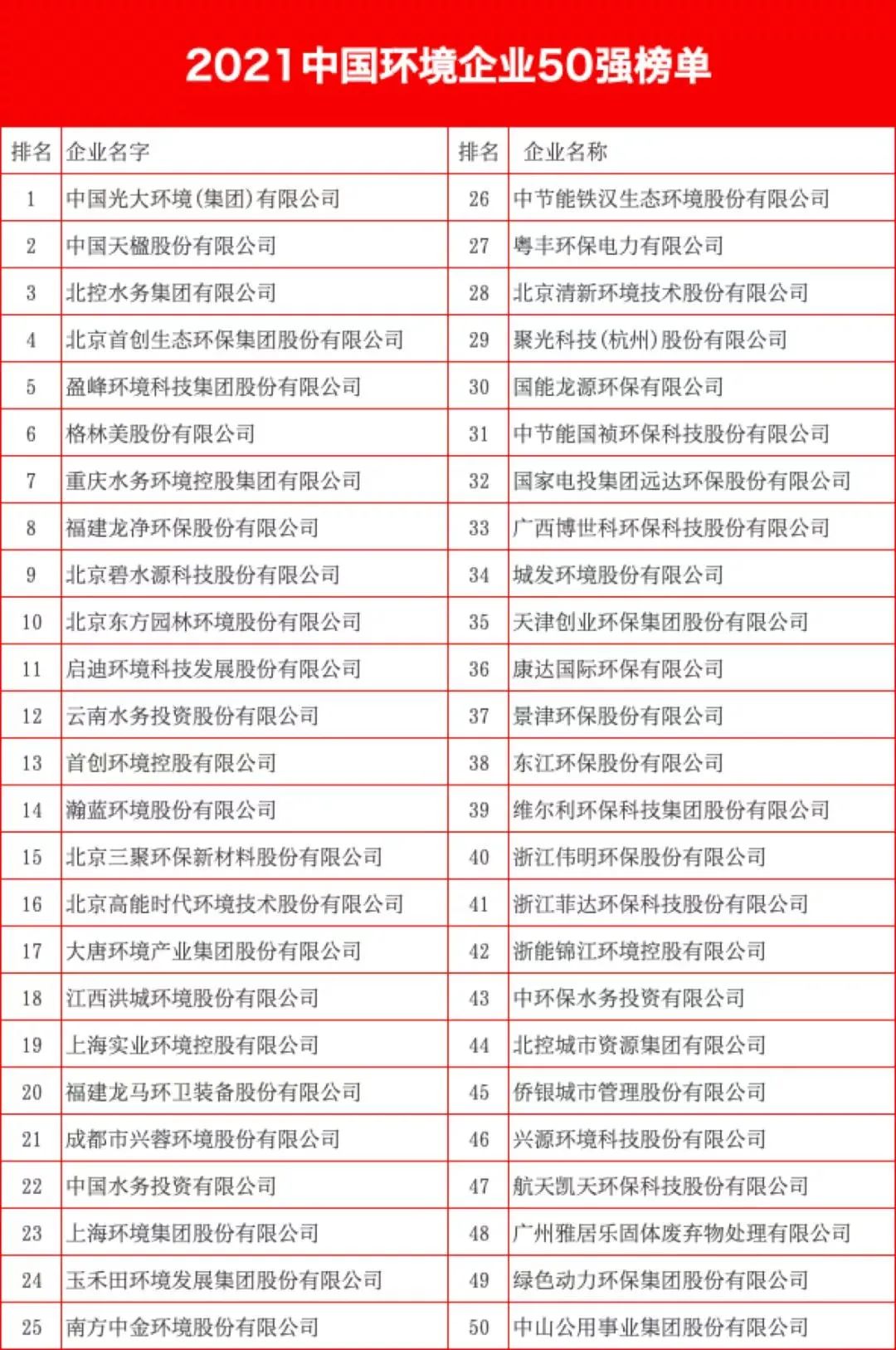 據此前主辦方發(fā)布的統計規(guī)則,2021中國環(huán)境企業(yè)50強榜單以企業(yè)申報為基礎,以公正公開為原則,以真實數據為依據,結合上規(guī)模環(huán)境企業(yè)調研,按照2020年度營業(yè)收入總額降序排列產生。其中,環(huán)保為主營業(yè)務的上市公司以已公布的2020年報營業(yè)收入數據為準;非環(huán)保類上市公司以年報中環(huán)保相關業(yè)務營業(yè)收入數據為準...
